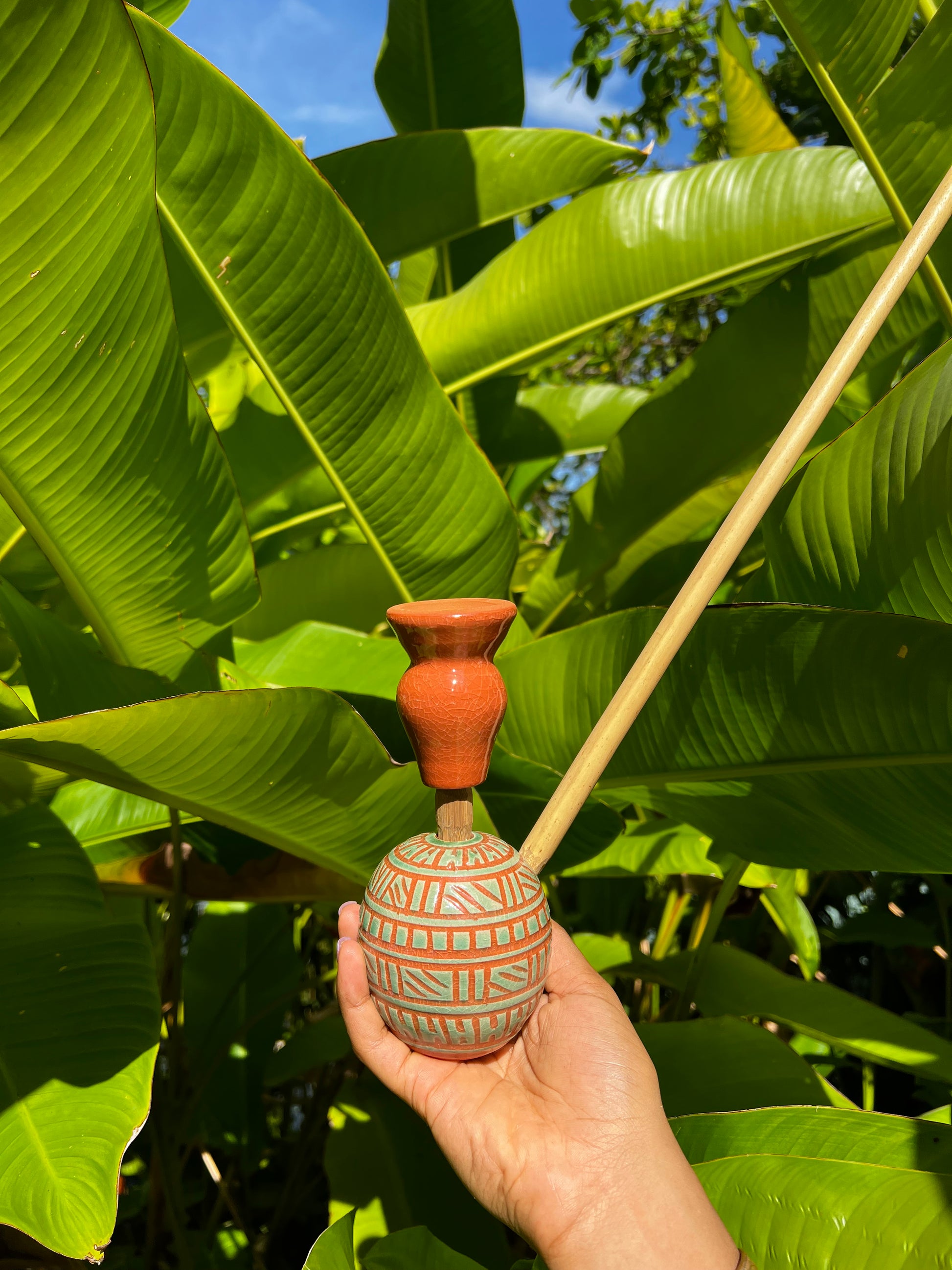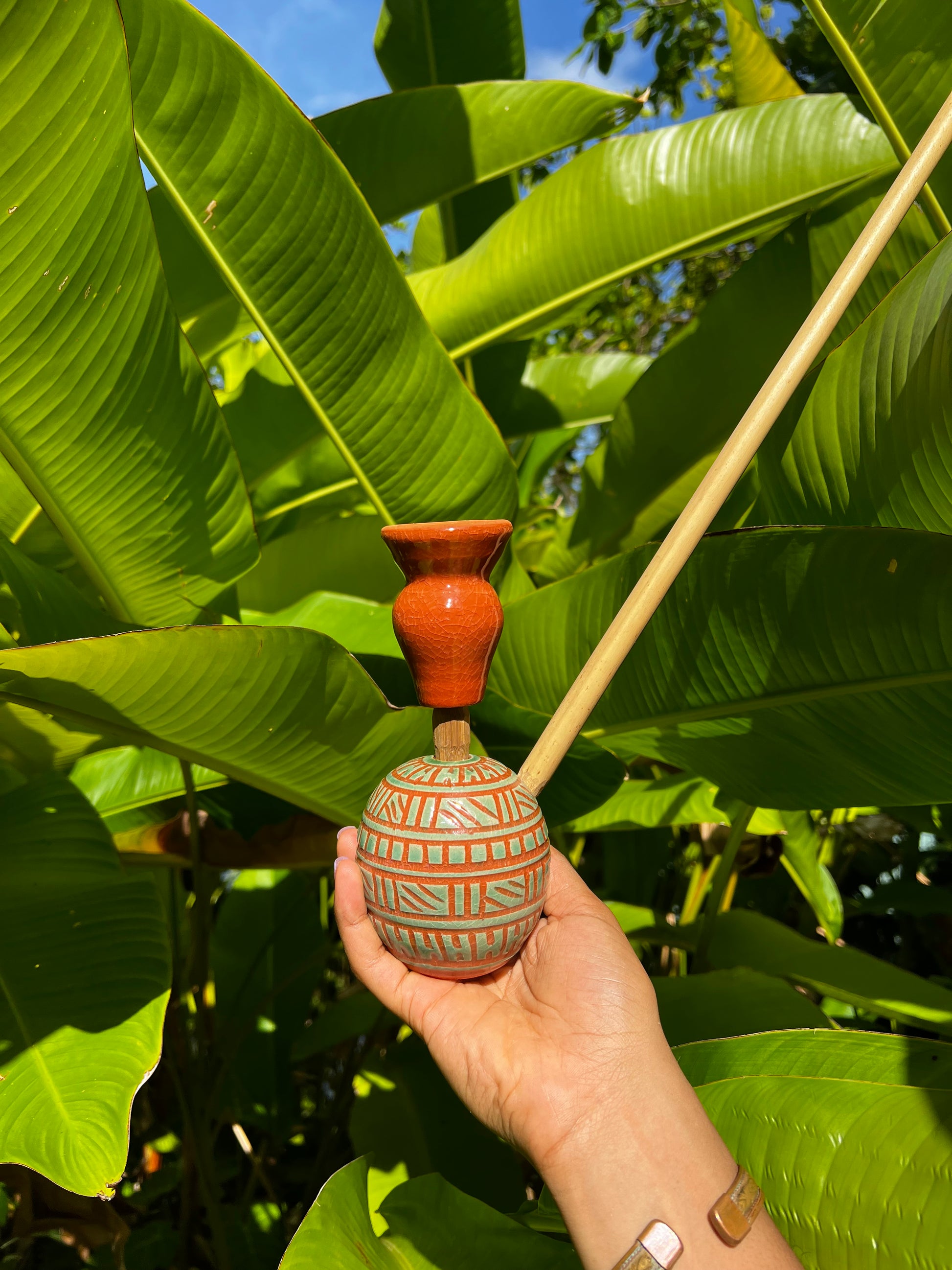 • Handcrafted Steam Chalice — made with organic Jamaican materials such as native coconut, cured bamboo, and clay