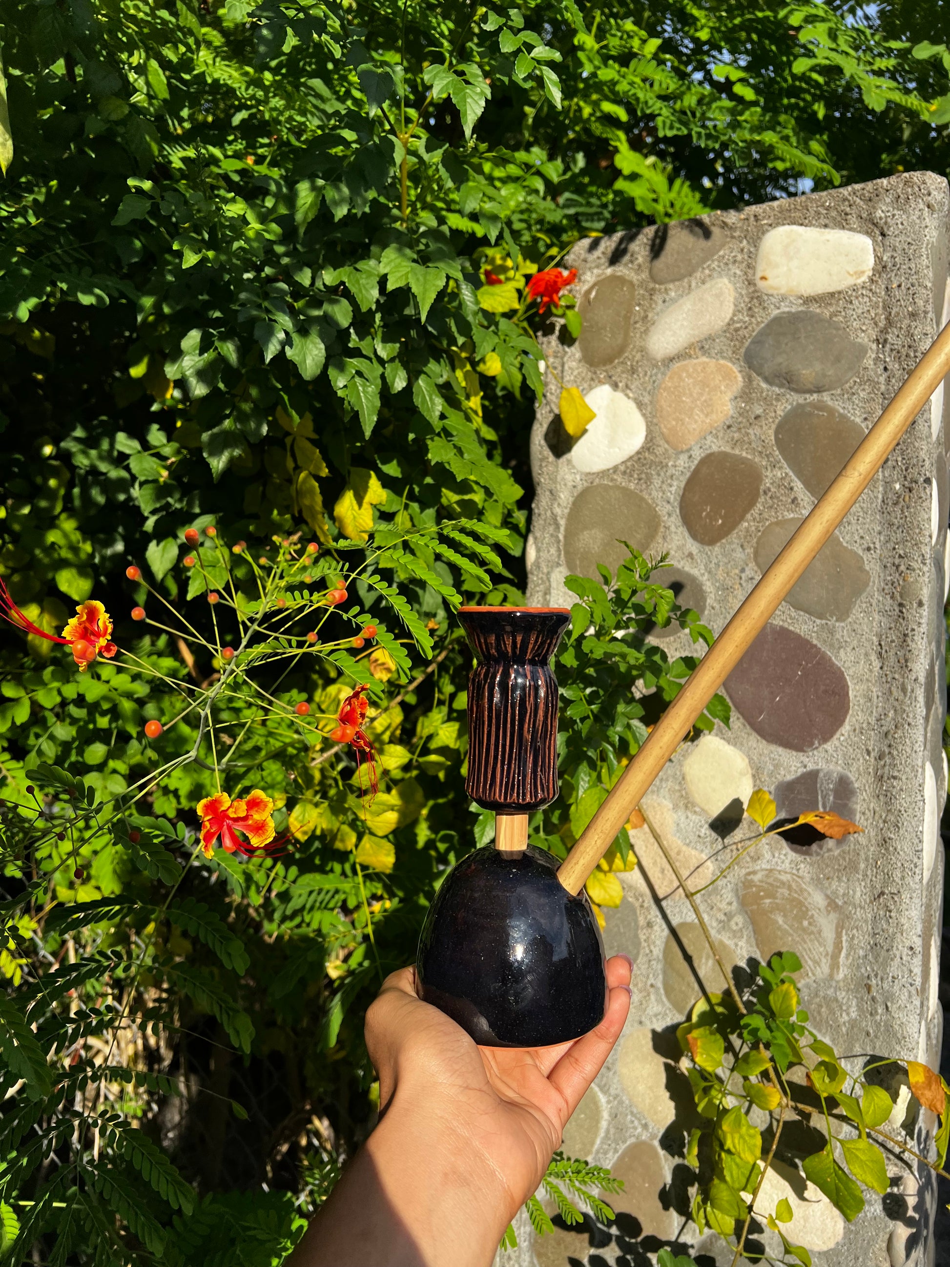 Handcrafted with sacred clay and infused with natural black tones, each chalice carries the strength of ancient roots and the fierce light of the lion’s heart. These vessels are made to hold your steam rituals, grounding your energy while igniting your inner power and radiant confidence. Embrace your fire, stay rooted, and rise with the sun.
