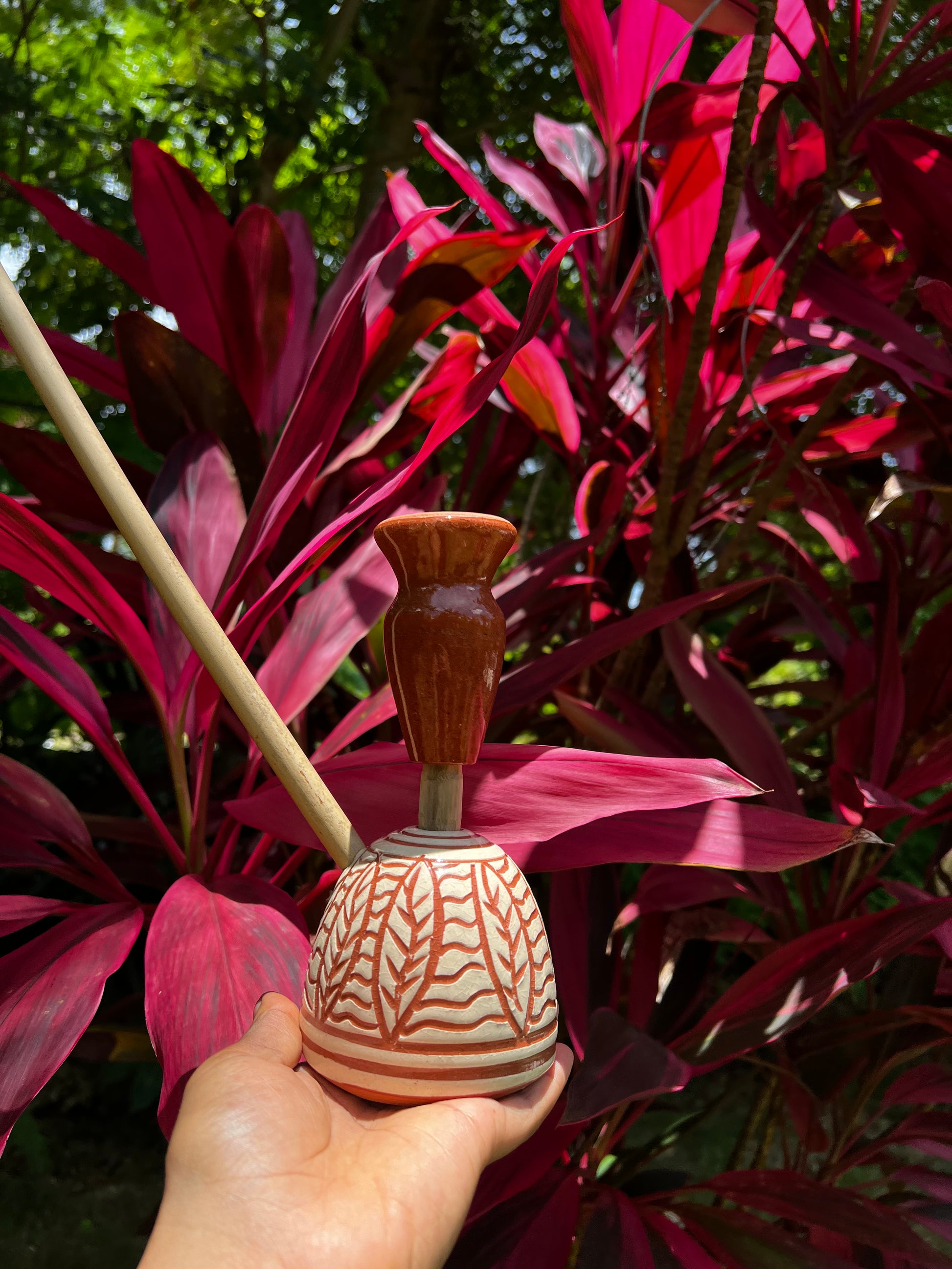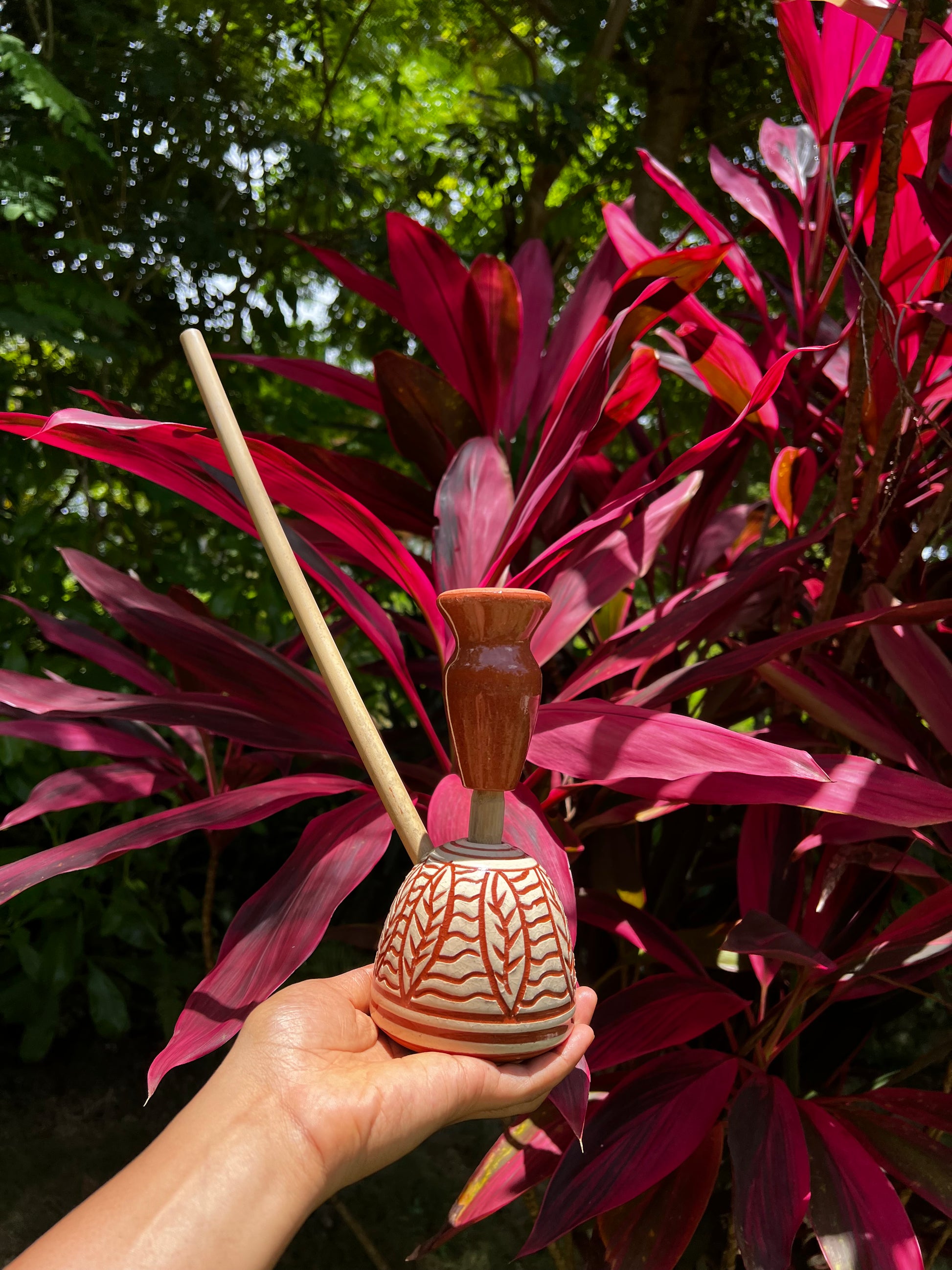 • Handcrafted Steam Chalice — made with organic Jamaican materials such as native coconut, cured bamboo, and clay