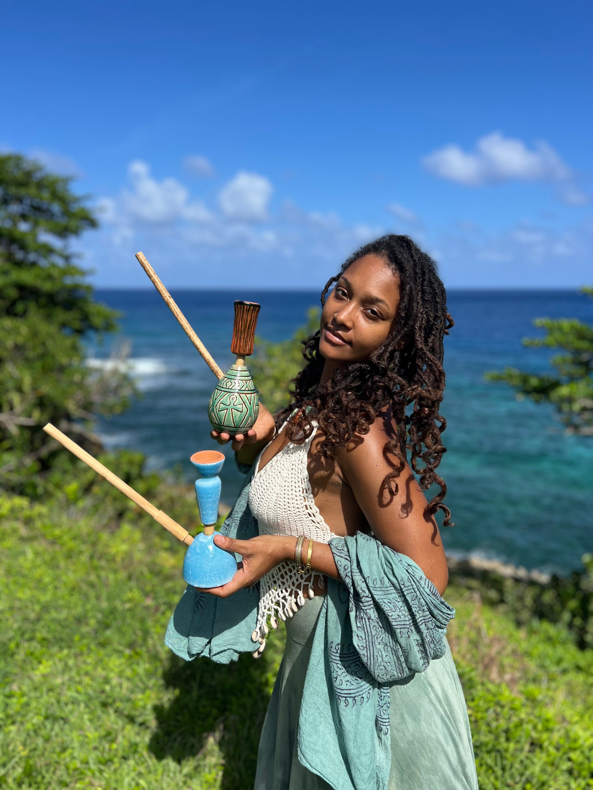 • Handcrafted Steam Chalice — made with organic Jamaican materials such as native coconut, cured bamboo, and clay