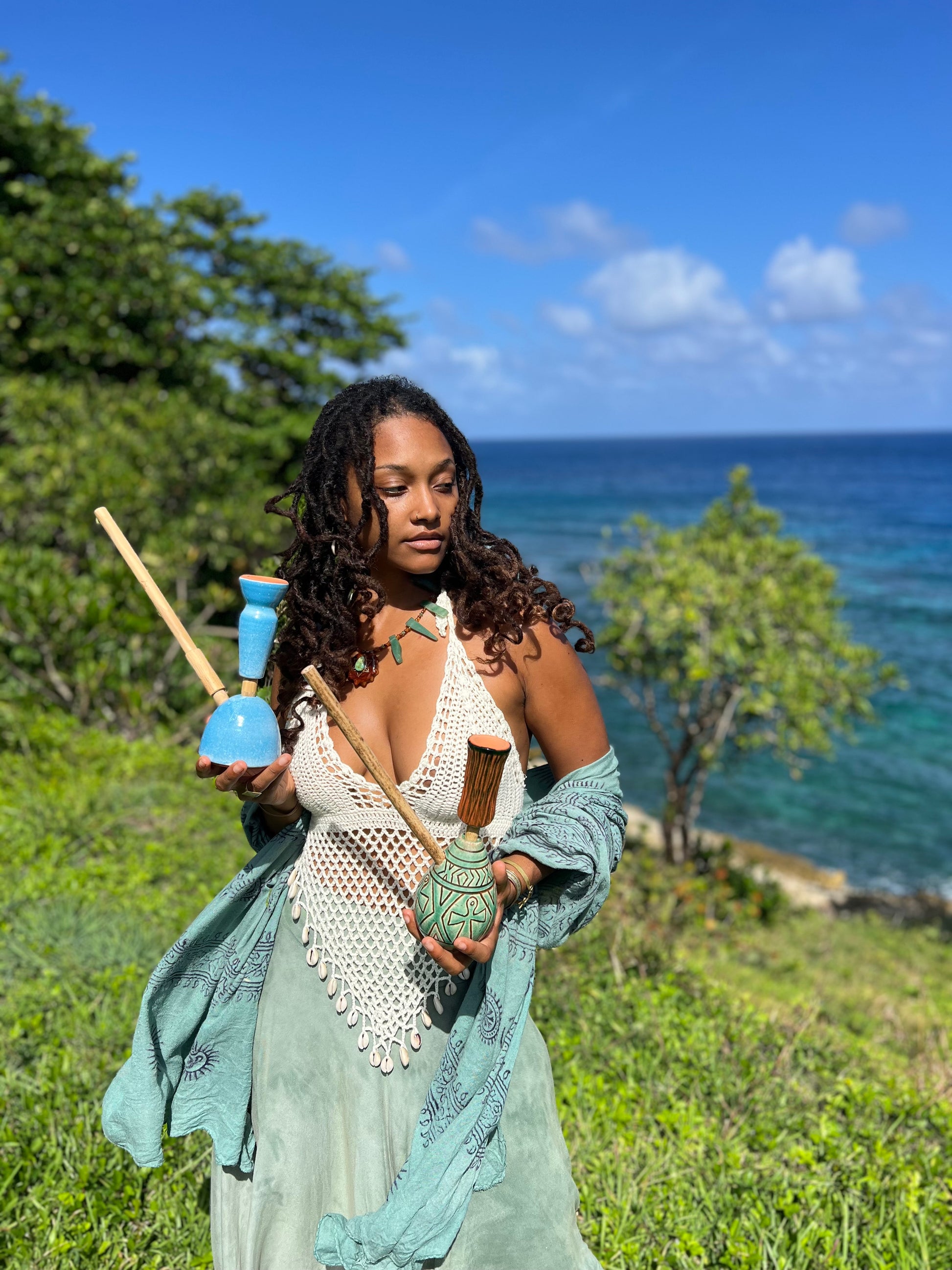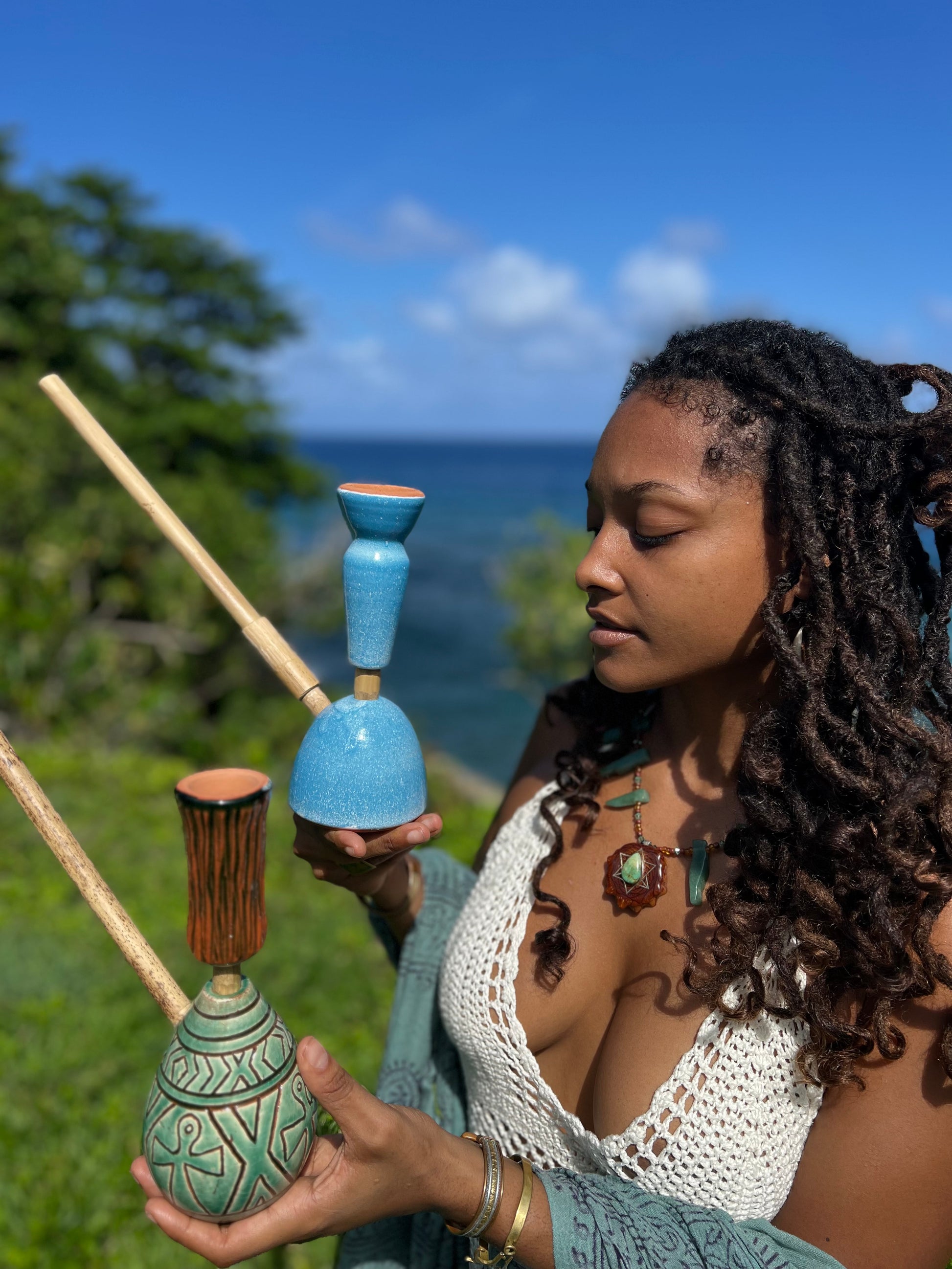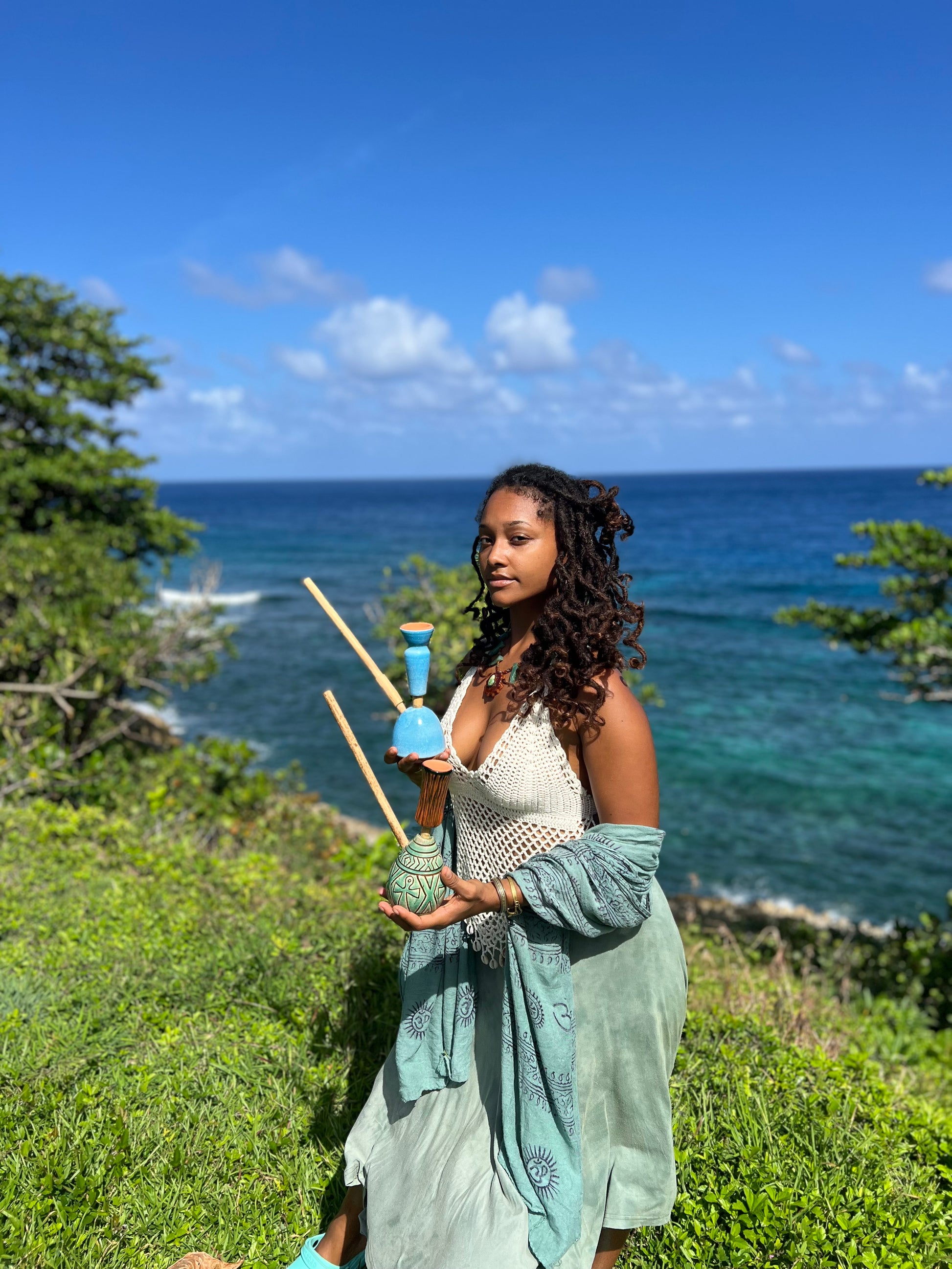 • Handcrafted Steam Chalice — made with organic Jamaican materials such as native coconut, cured bamboo, and clay