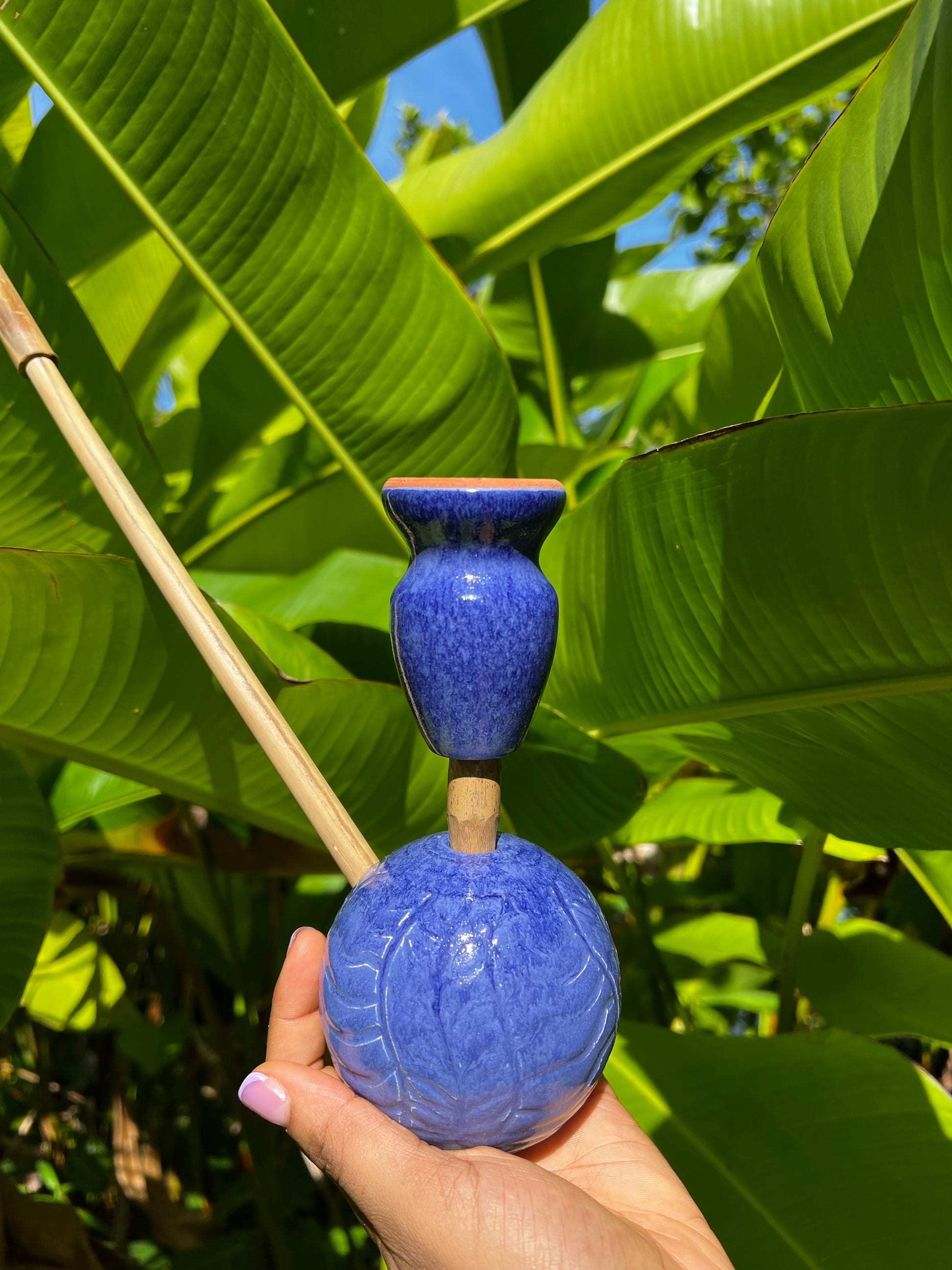 • Handcrafted Steam Chalice — made with organic Jamaican materials such as native coconut, cured bamboo, and clay